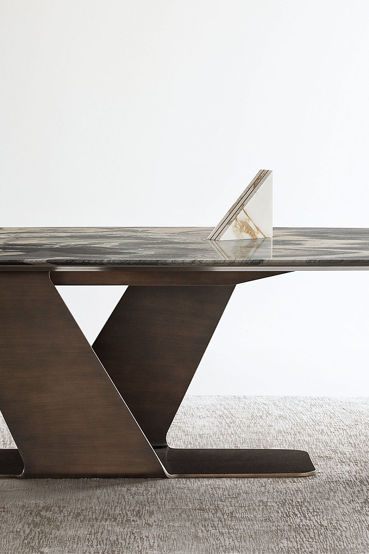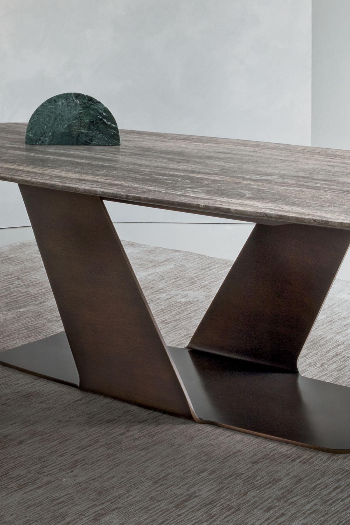 Skilled construction techniques merge with design to create a sculptural base enriched by different types of natural stone tops and the distinctive Rugiano Decoration.
