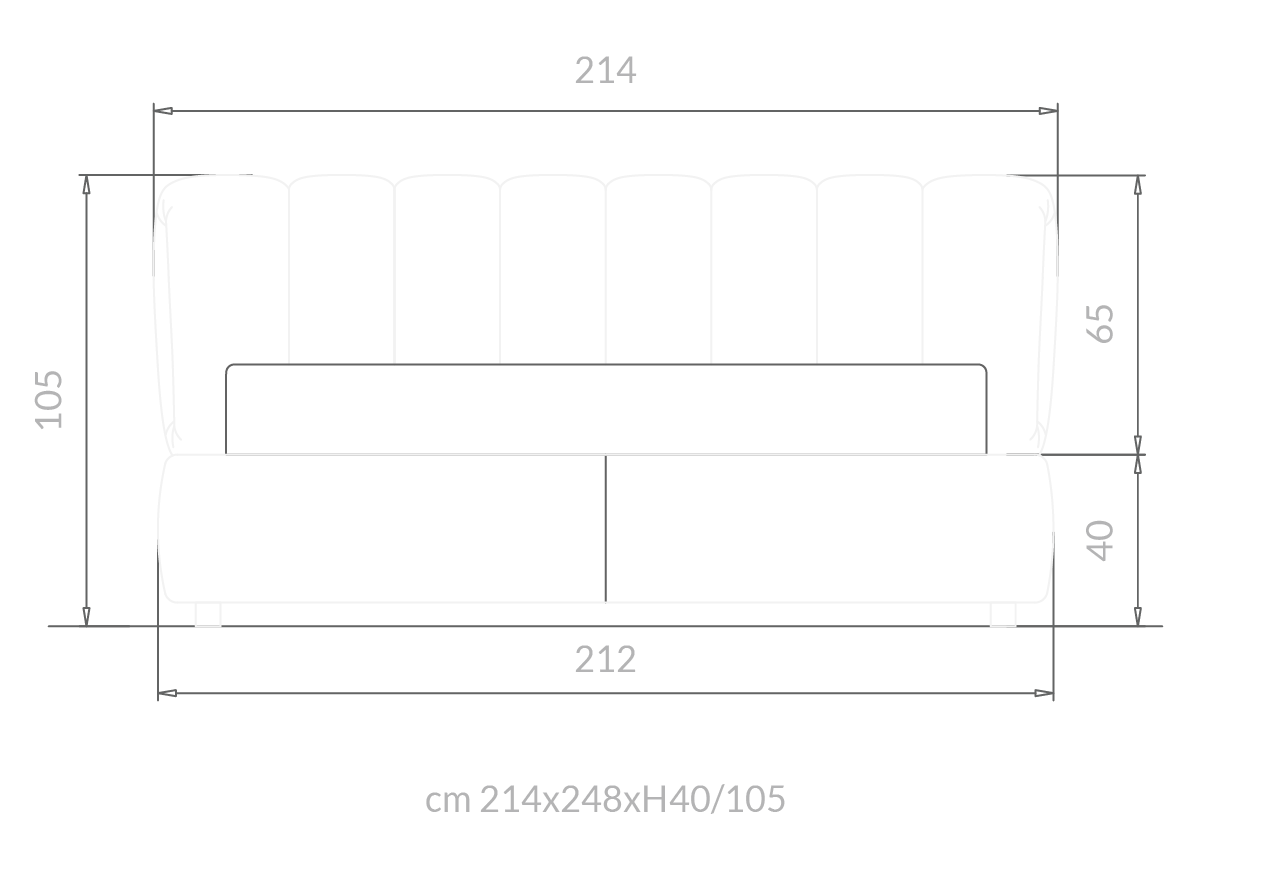 The headboard takes center stage — upholstered, enveloping, and visually modeled — capturing the light and animating shadows in a continuous interplay. The bedframe, integrated with balance, grounds the composition with a solid yet elegant presence, contributing to the overall aesthetic language.