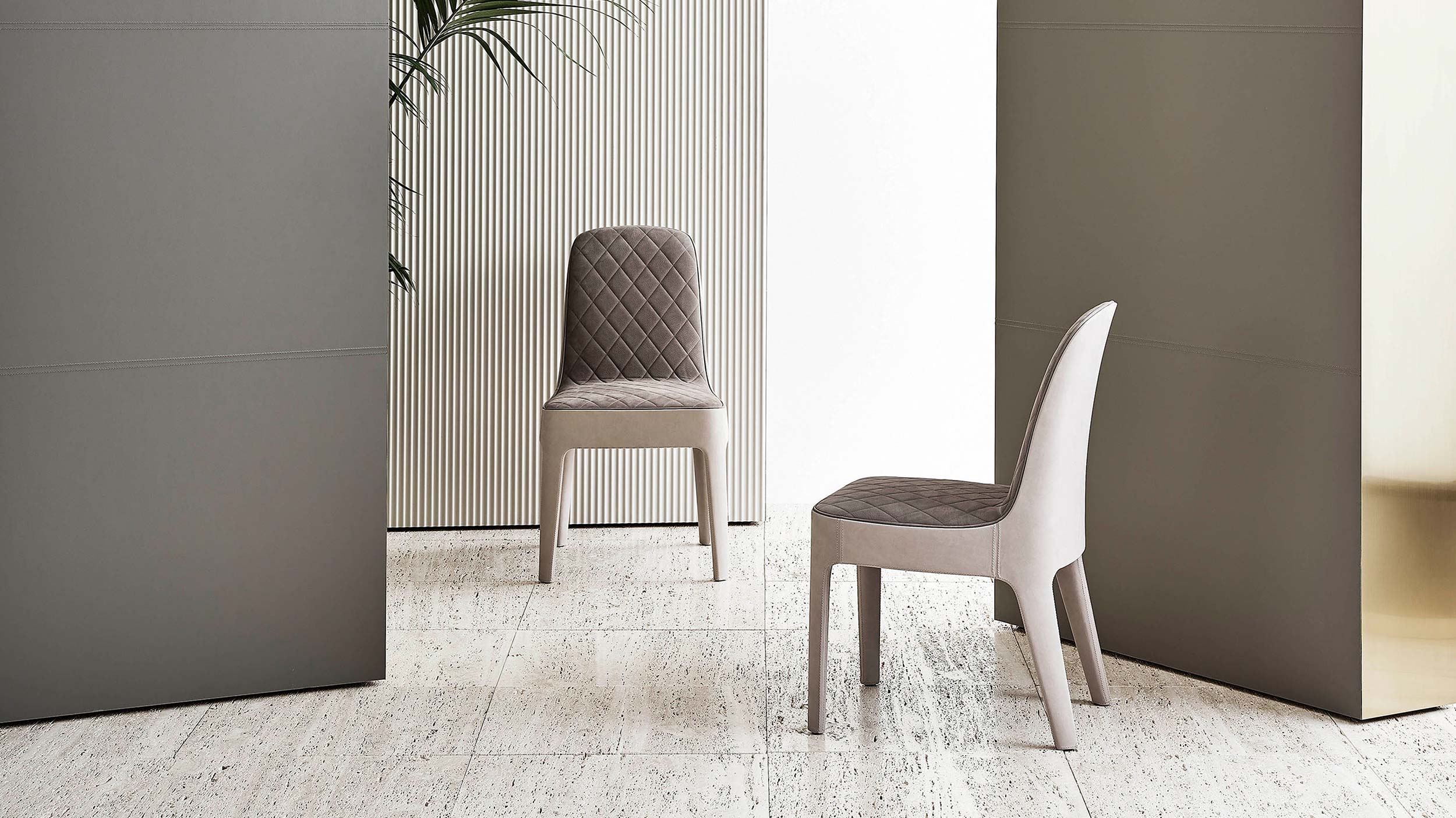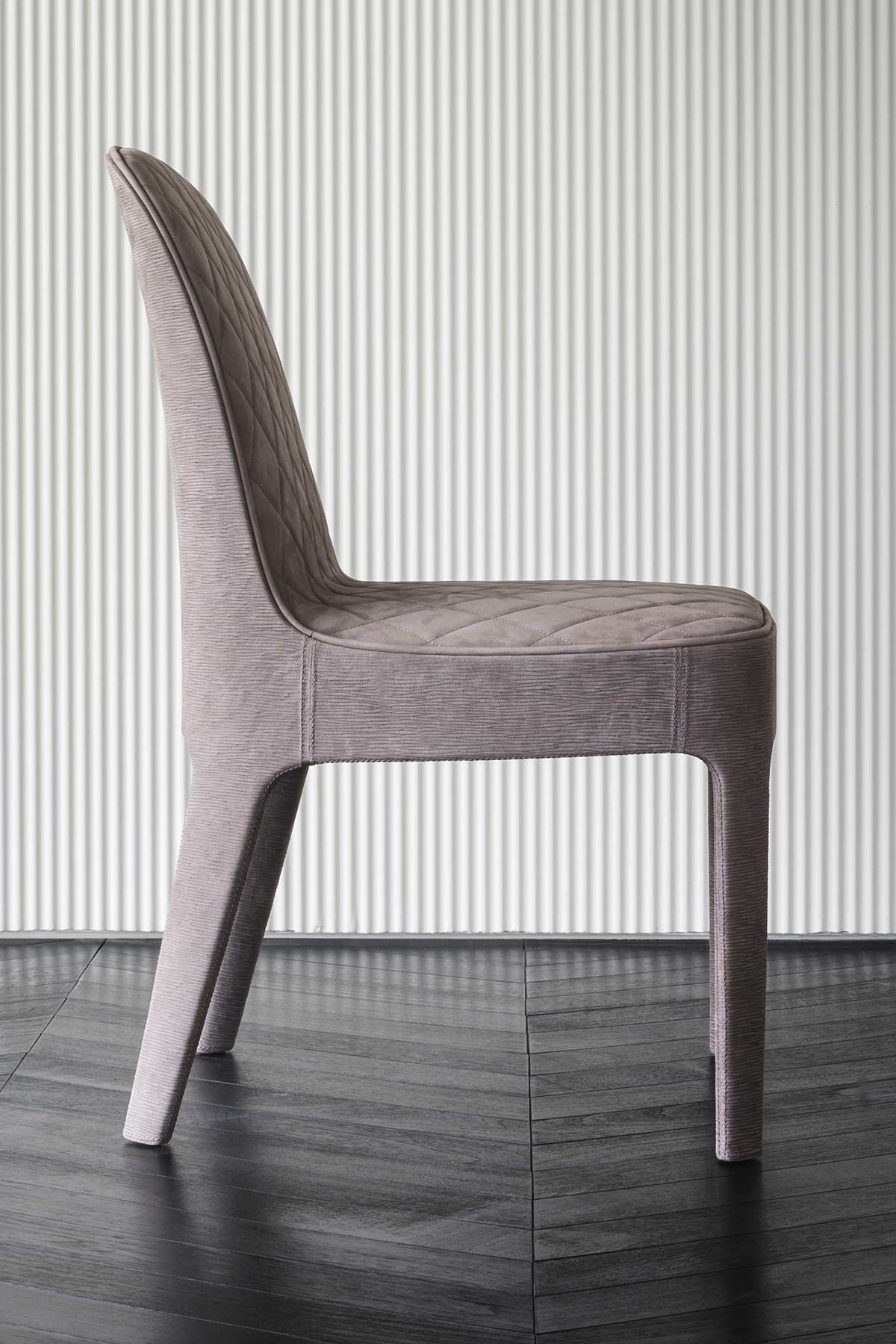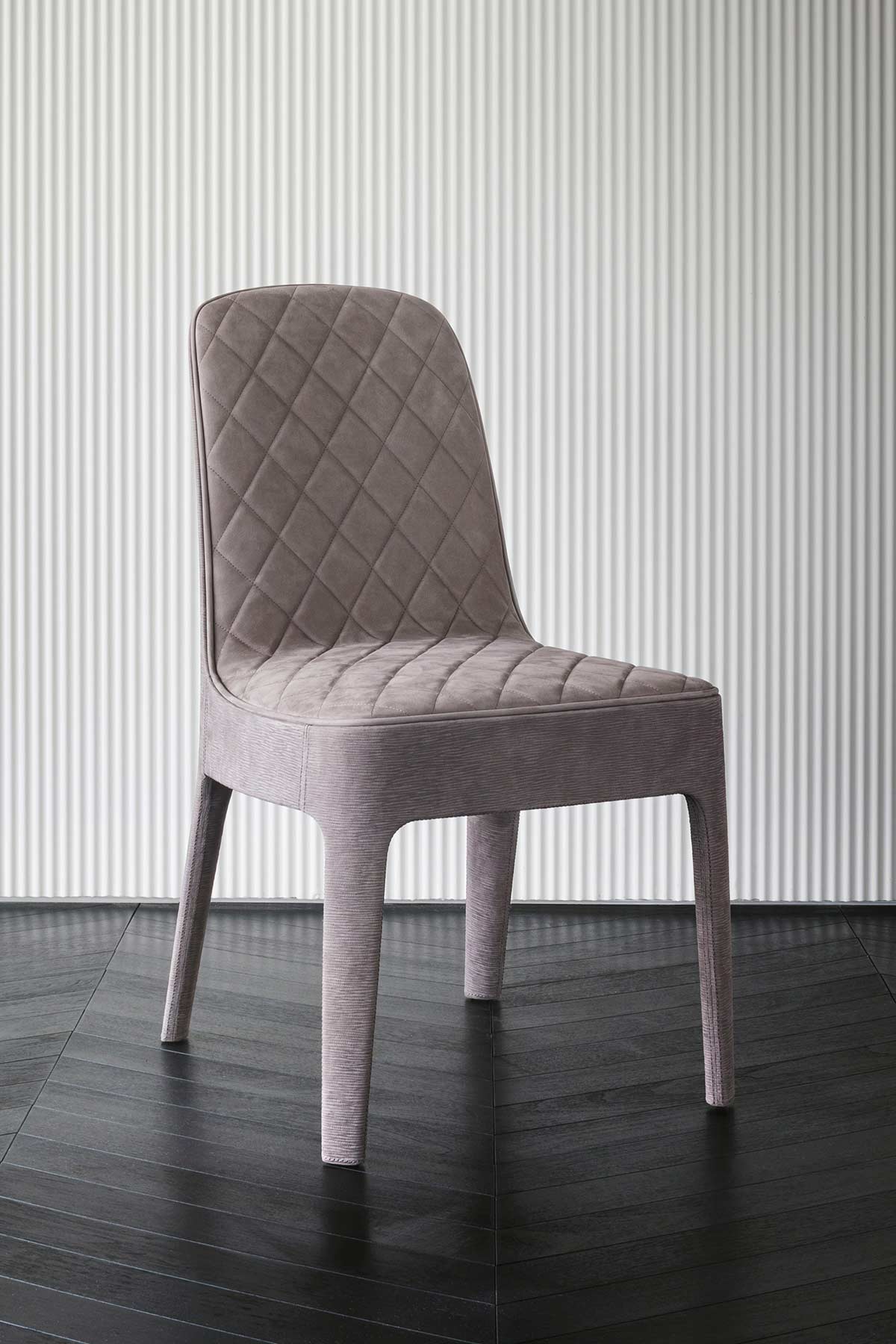 Wholly upholstered chair. Also available with stitched seating or with structure upholstered in printed leather