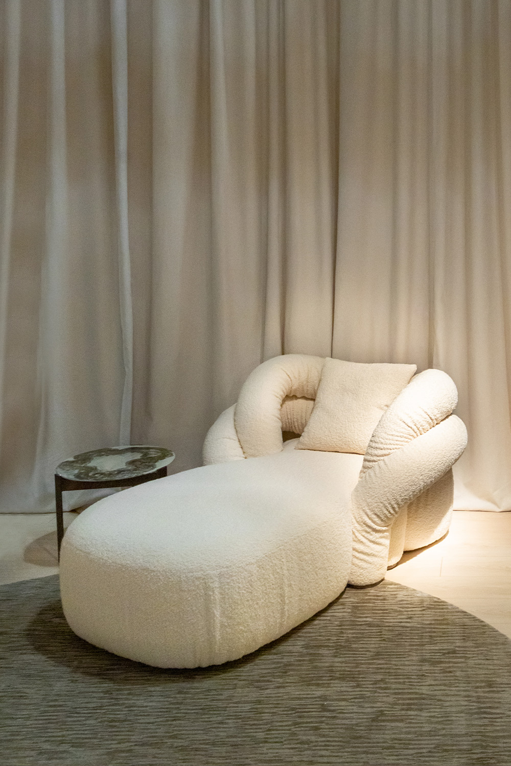 An expression of a design vision that centers on well-being and beauty, Abbraccio Chaise Longue transforms comfort into an architectural gesture, revealing a harmony of emotion, form, and material.