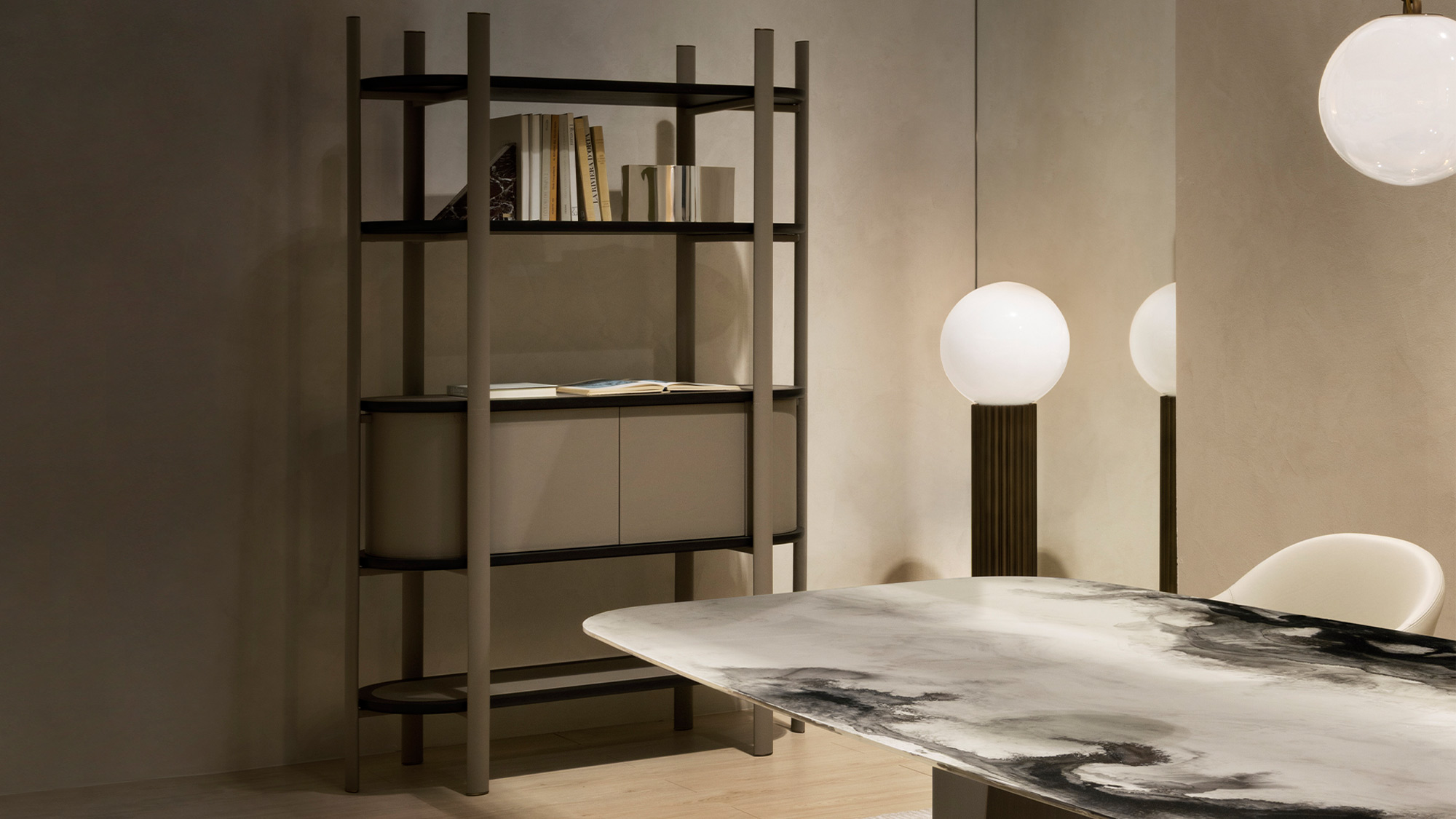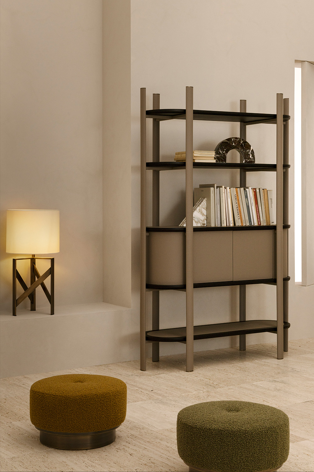 The Coquette collection stands out for its refined aesthetic and meticulous attention to detail, offering a range of furniture pieces — including sideboard and bookcase — designed for contemporary interiors where function and style coexist seamlessly.