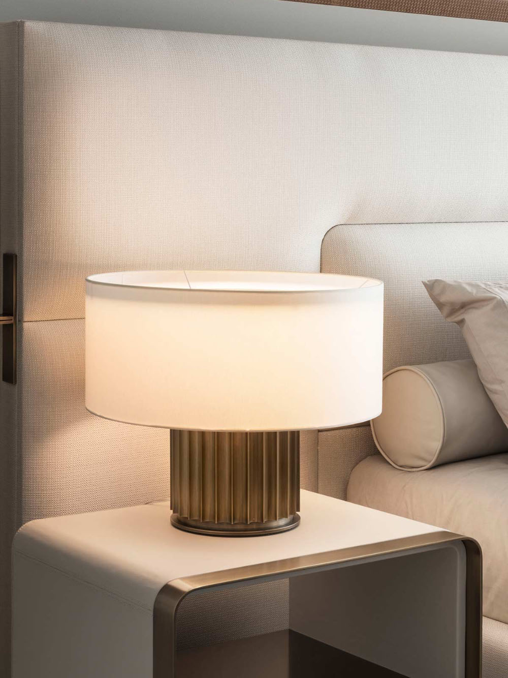 Bedside table with 1 drawer, upholstered in leather, with bronze details.