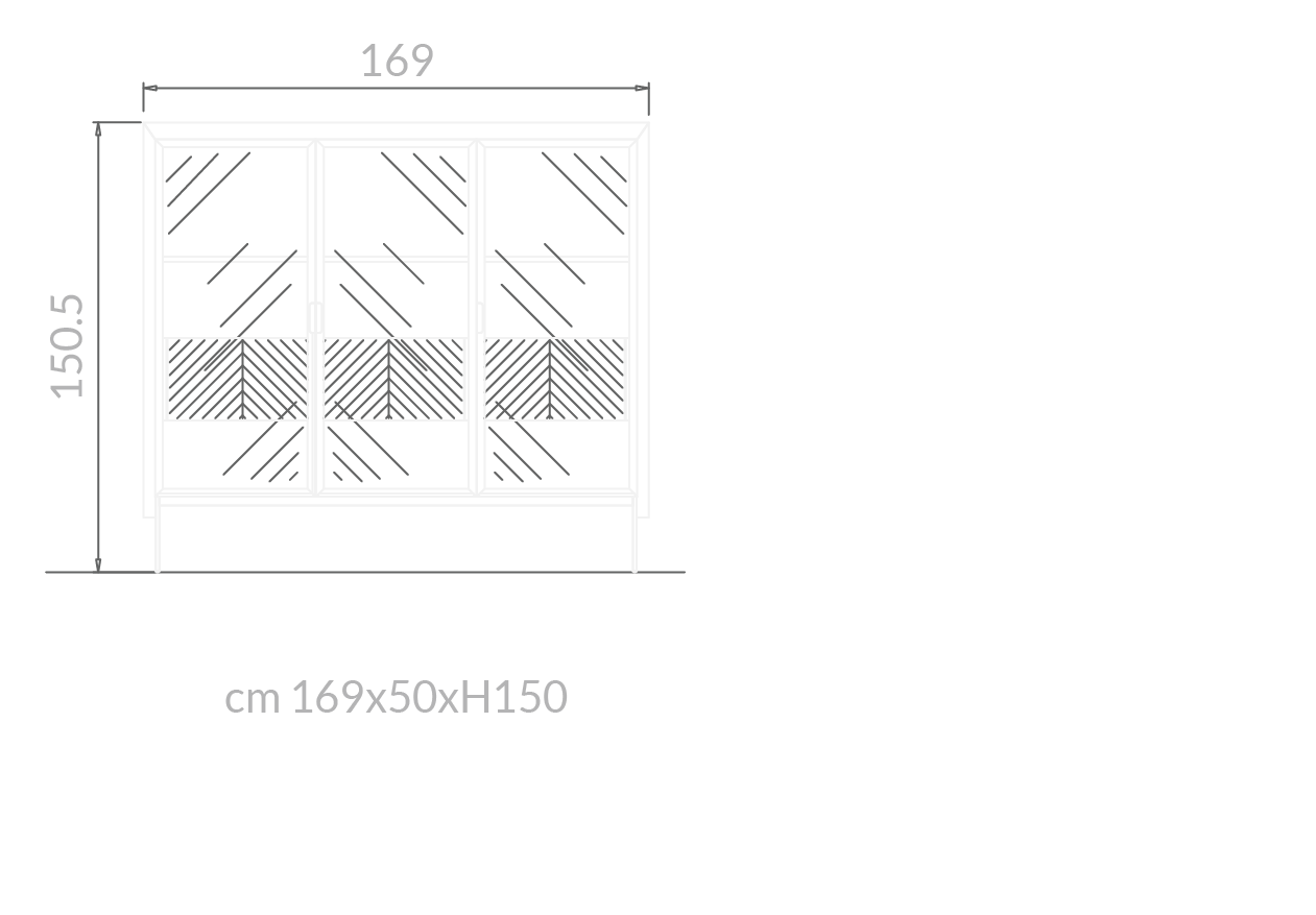 Sideboard with bronze details. Structure upholstered in leather and glass doors.