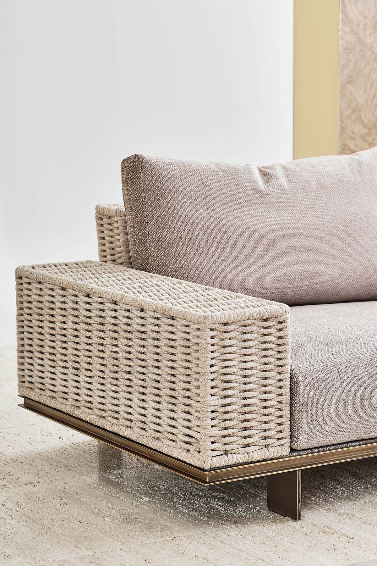 The Memphis collection, is characterized by a linear metal base, with extremely elegant lines and leather details for versions covered in leather. The base with marble coffee tables allows the creation of different compositions.