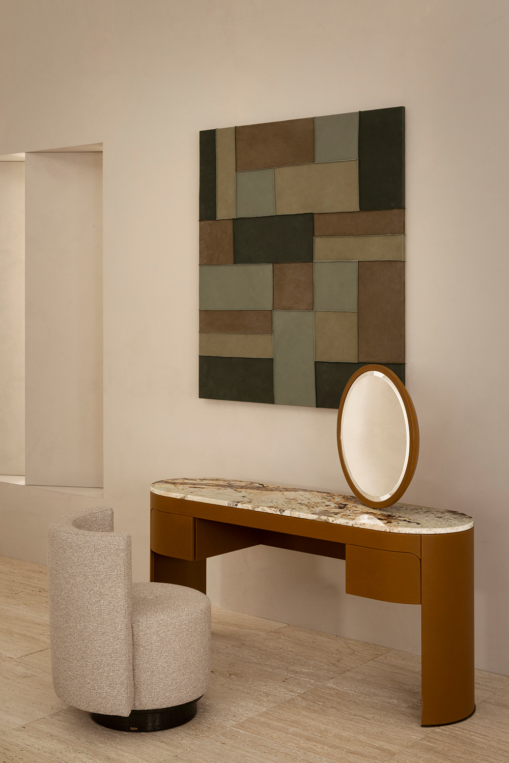 Vogue is a vanity conceived for sophisticated night areas or elegant dressing corners, where every detail contributes to creating a relaxed, tidy, and highly personal atmosphere. A perfect synthesis of Italian craftsmanship, aesthetic research, and functional design, Vogue is a statement piece with bold character and timeless beauty.