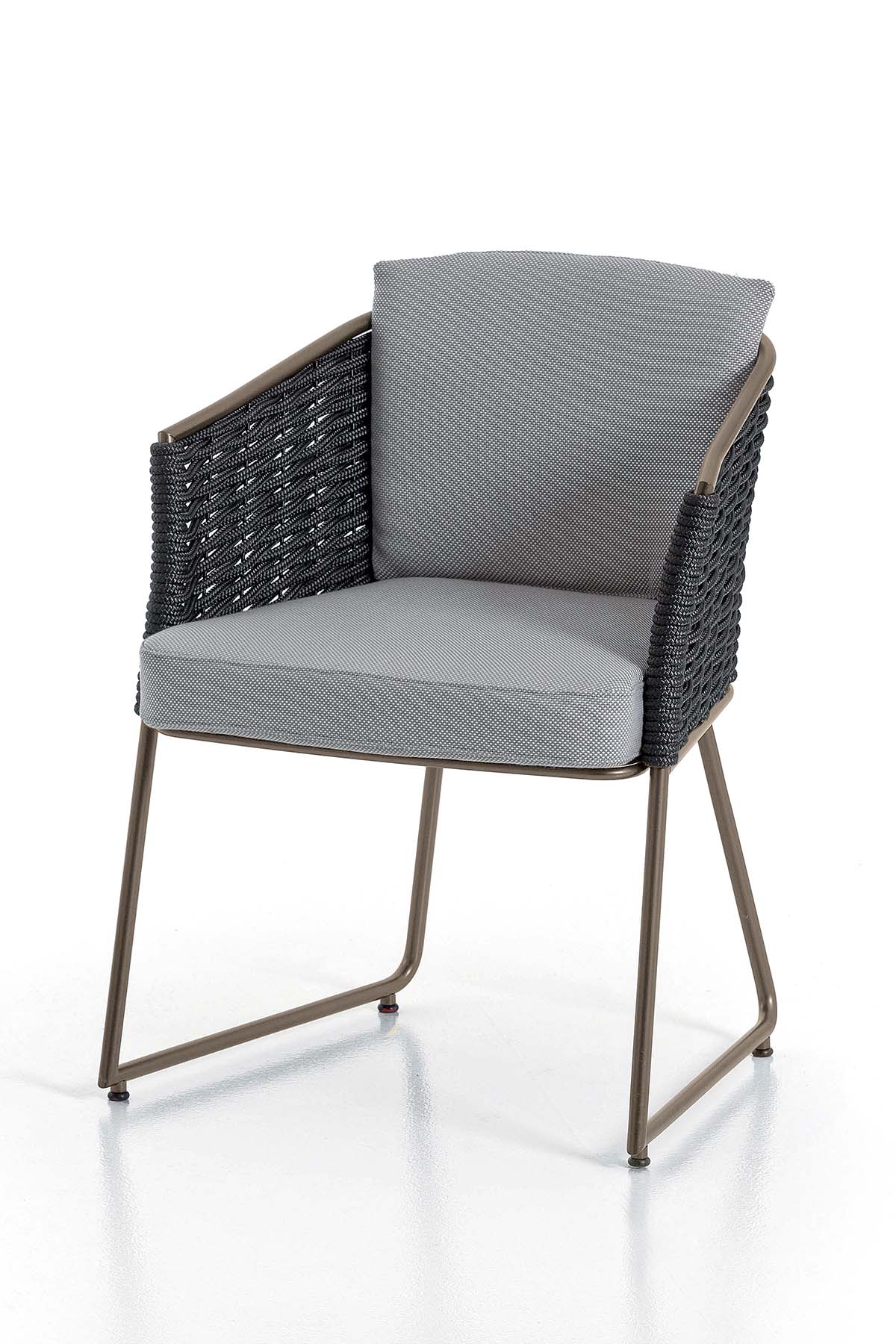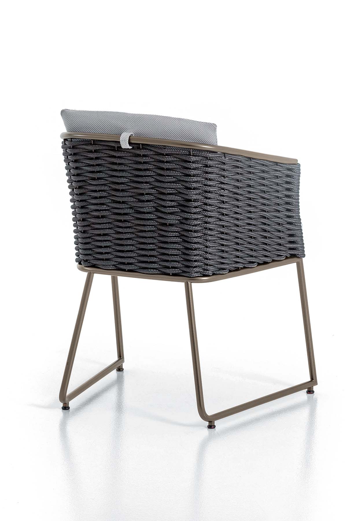 The Afrodite chair reinterprets Rugiano’s outdoor language with a compact, contemporary design conceived to harmonize with both elegant and functional spaces.