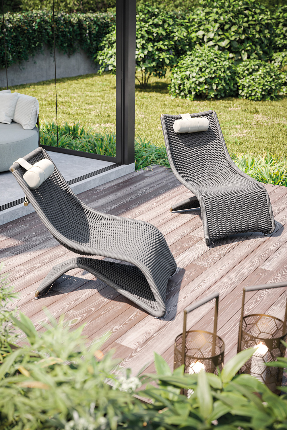 Playa is a chaise longue with a fluid, organic profile, designed to reinterpret outdoor relaxation through a sculptural and contemporary lens. Its sinuous shapes blend seamlessly with open-air surroundings, creating a harmonious dialogue between design and nature, and offering an elegant retreat for personal well-being.