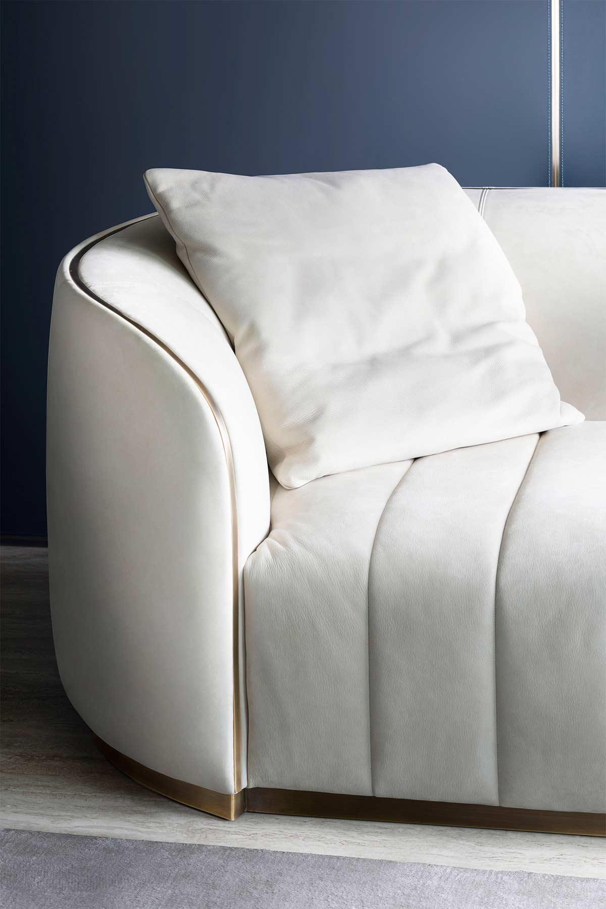 Collezione di imbottiti componibile. I terminali e l’elemento ad angolo curvati permettono di creare composizioni sinuose a particolari.