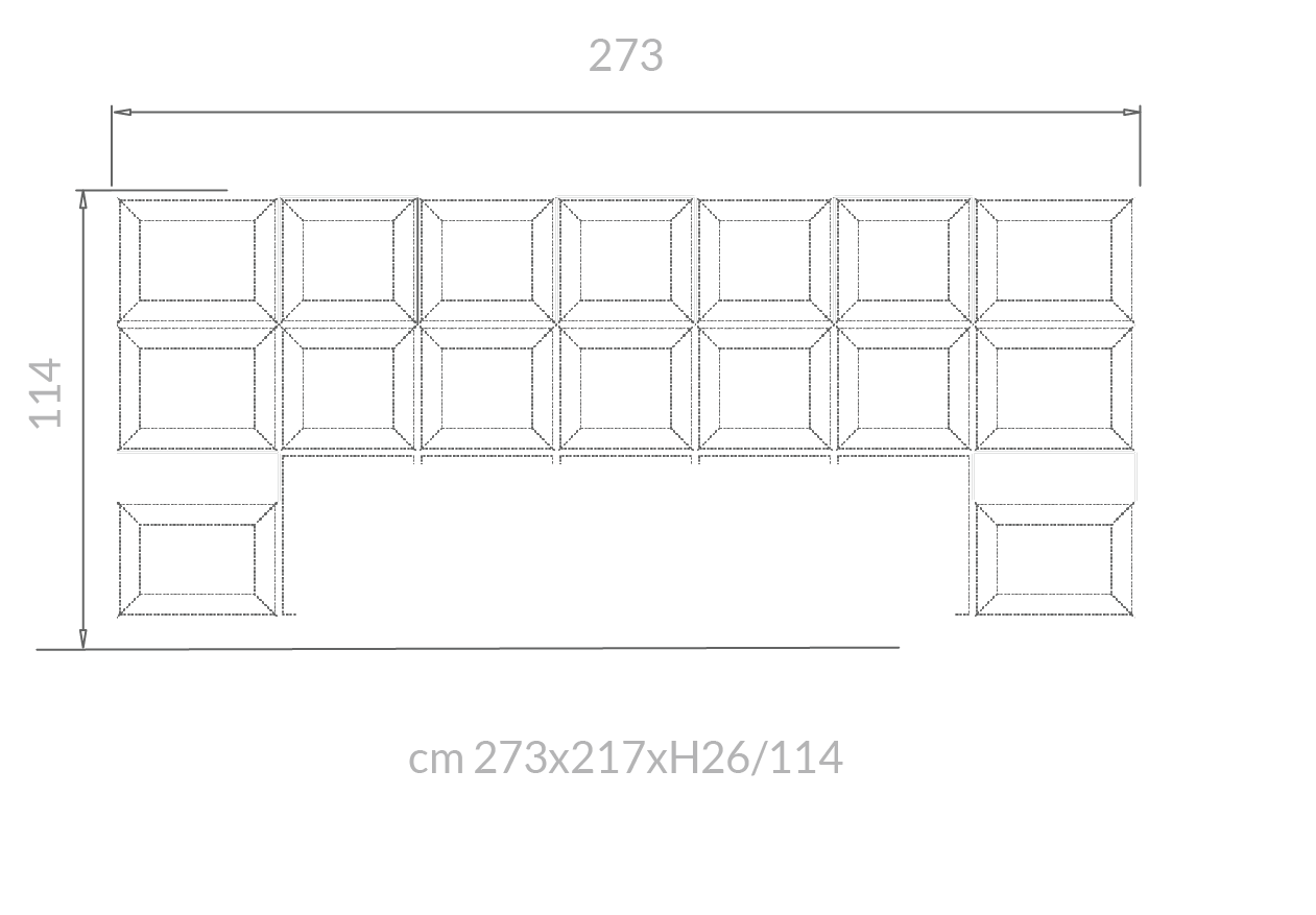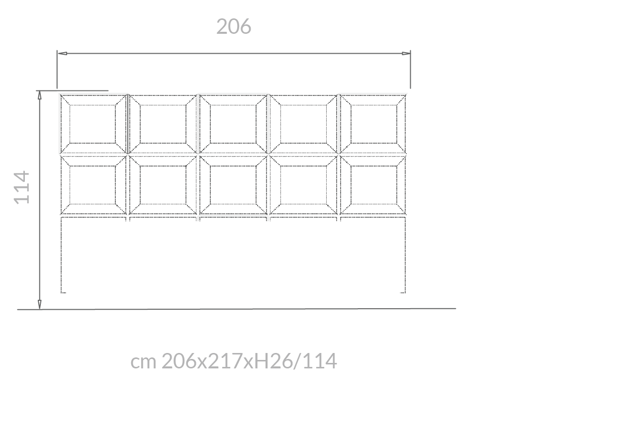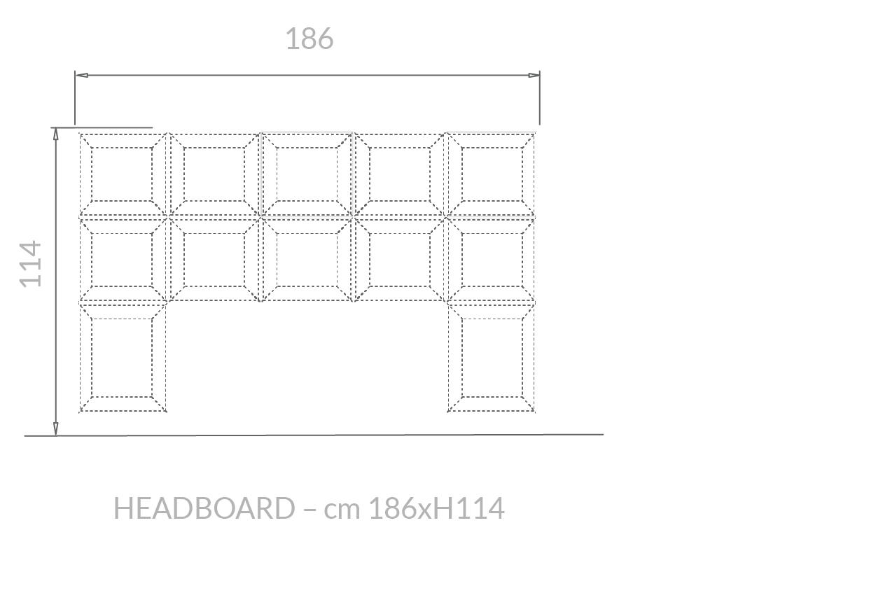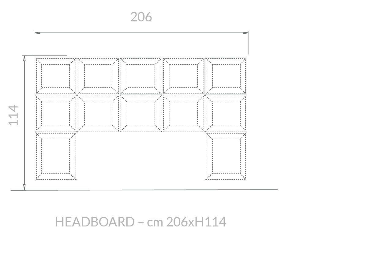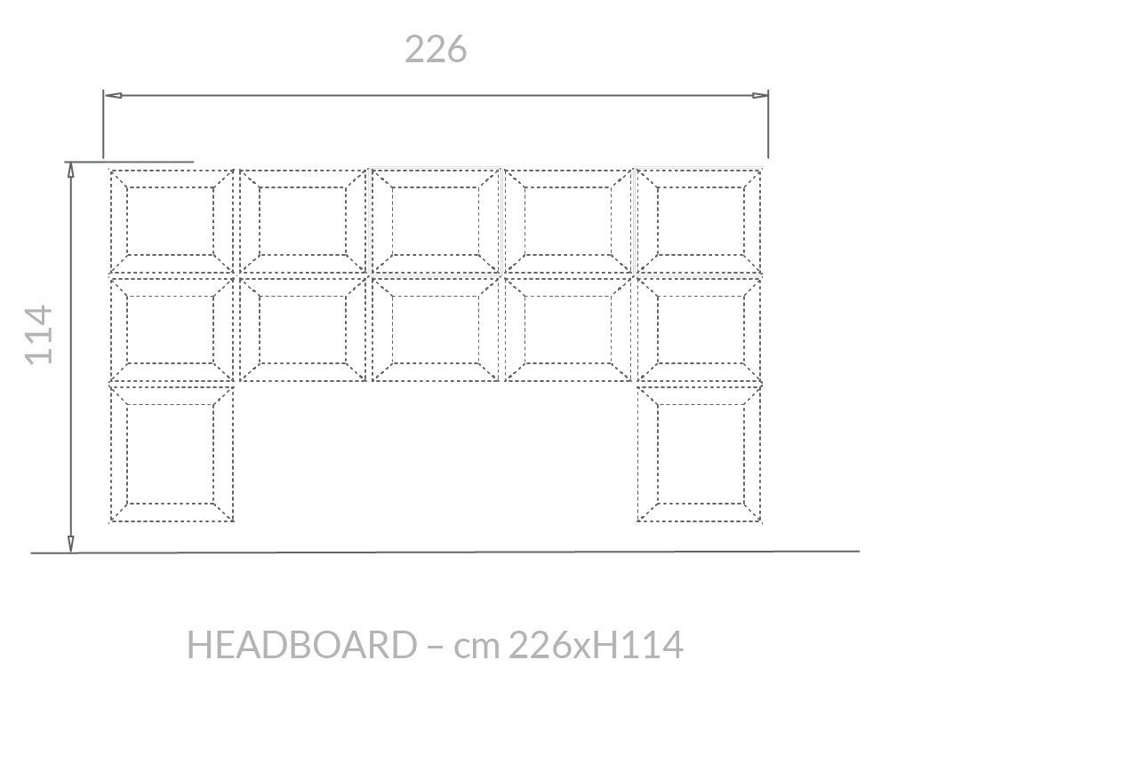 Il letto Gemma si distingue per la grande testiera imbottita, caratterizzata da moduli geometrici che creano un disegno regolare ed elegante, trasformando la parete in un fondale scenografico di forte personalità. La cornice metallica, luminosa e preziosa, avvolge la composizione con un gesto deciso, amplificando l’effetto architettonico e conferendo all’insieme un carattere distintivo e contemporaneo.