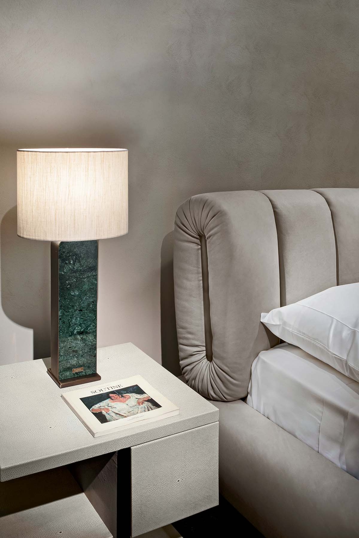 Ogni dettaglio è pensato per trasmettere una bellezza che non ha bisogno di eccessi, ma si afferma attraverso la purezza delle linee, il prestigio dei rivestimenti e la qualità delle lavorazioni artigianali. È un progetto pensato per ambienti notte raffinati, in cui comfort, estetica e carattere trovano un equilibrio naturale.