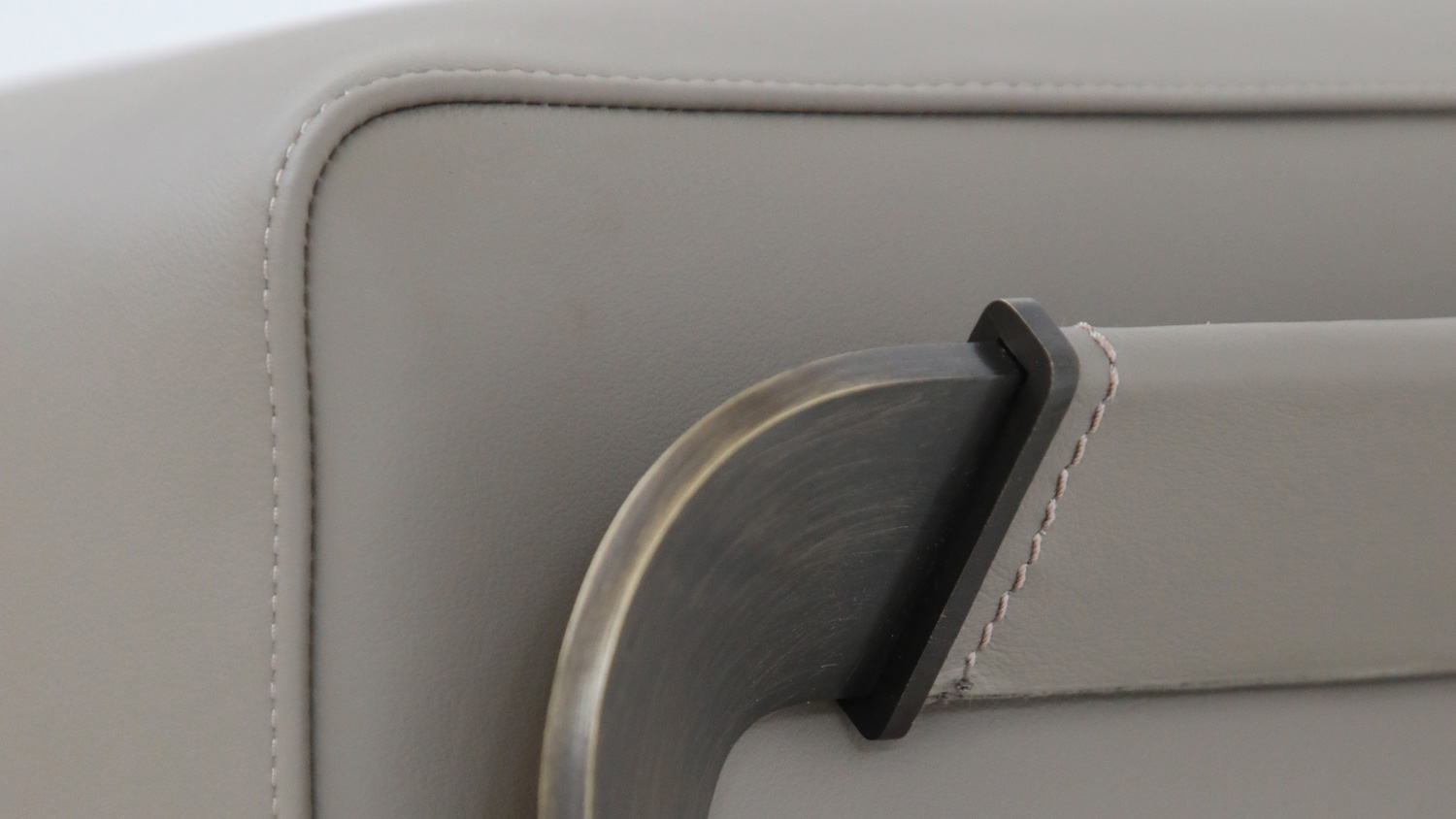 Il sedile, ampio e confortevole, è disponibile con rivestimento in tessuto o in pelle, valorizzato da cuciture sartoriali che ne seguono il profilo con discrezione. L’interazione tra materiali caldi e freddi genera un contrasto bilanciato, che dona alla panca un carattere versatile: perfetta ai piedi del letto, in ingresso o in spazi lounge dal gusto contemporaneo.