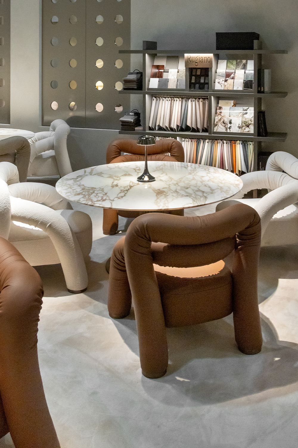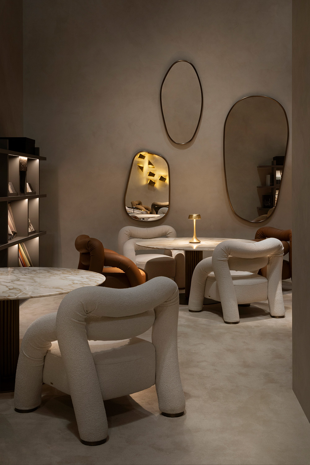 Una presenza compatta ma carismatica, che racchiude in sé l’essenza della collezione: emozione tattile, ricercatezza formale e grande valore artigianale.