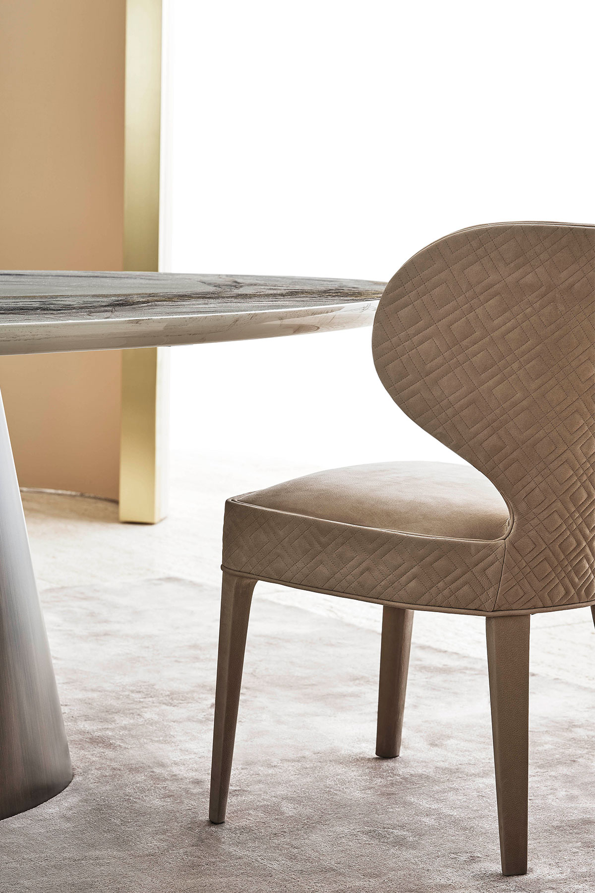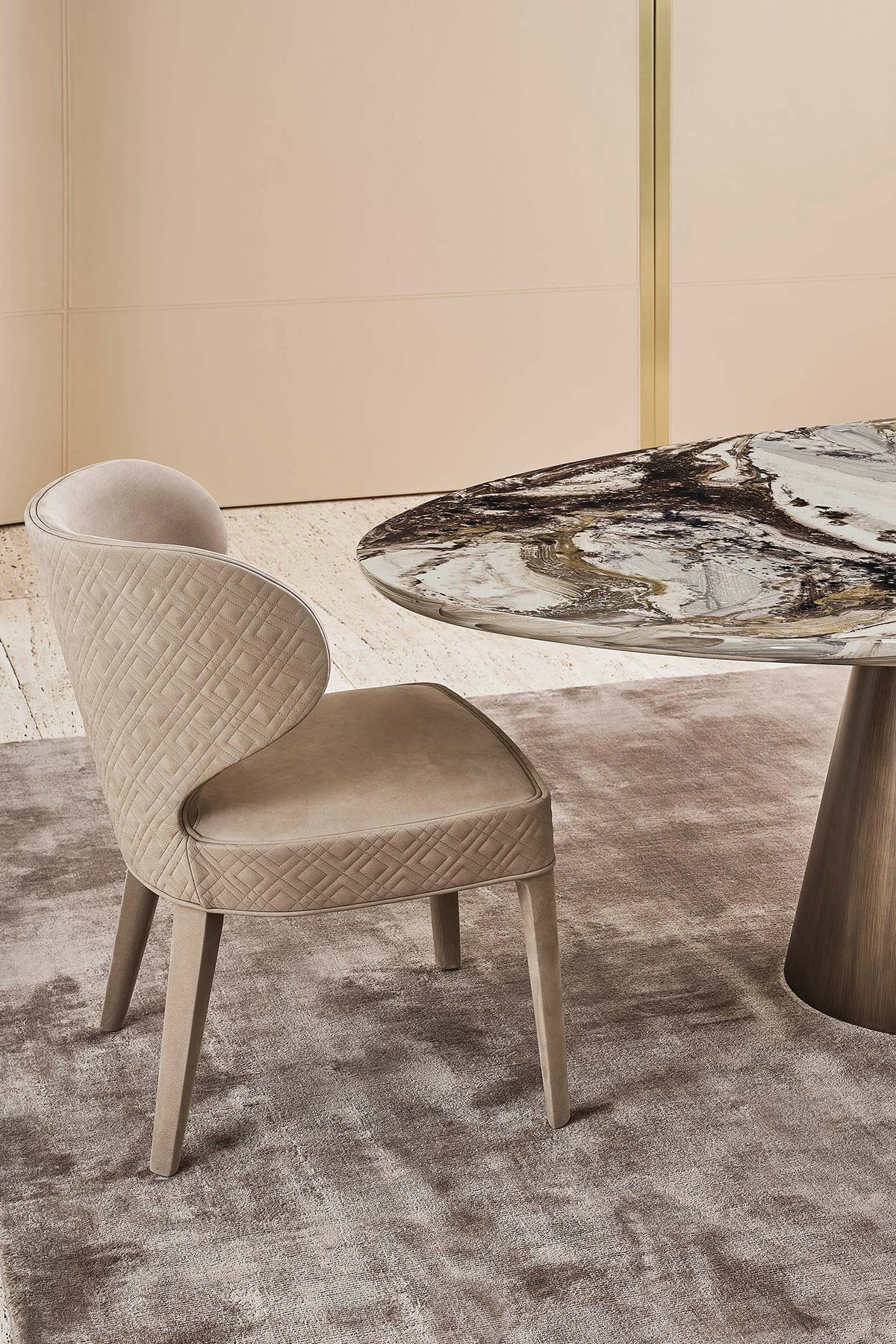 Sedia e capotavola completamente rivestito o con gambe in legno. Retro liscio o caratterizzato da ricamo ELLE.