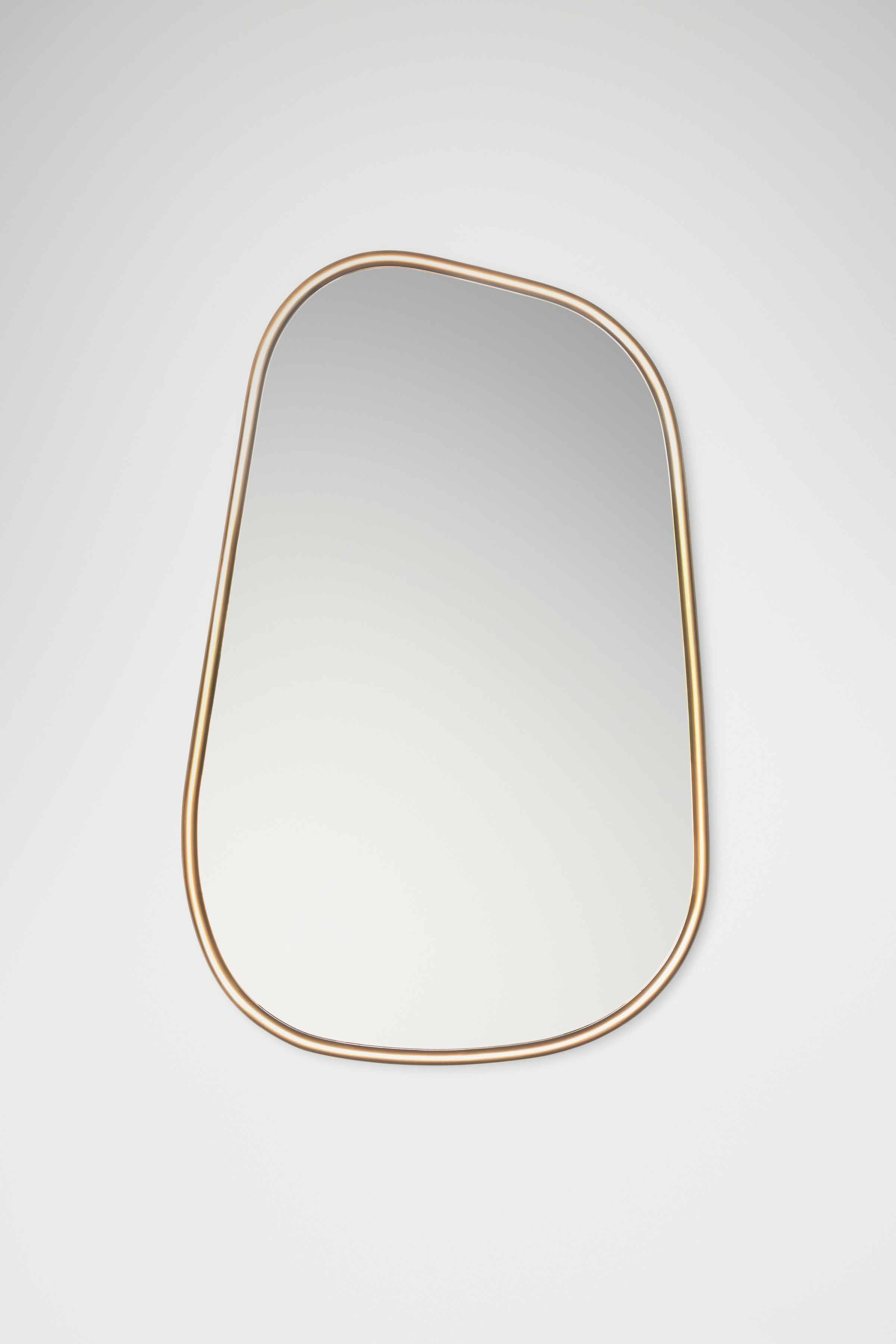 Cornice in bronzo leggermente bombata per la collezione di specchi dalle forme irregolari.