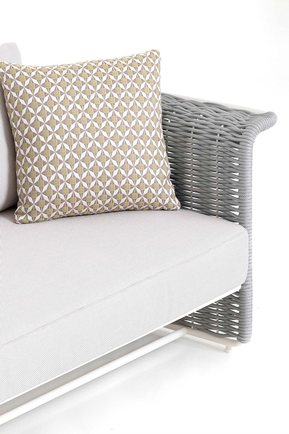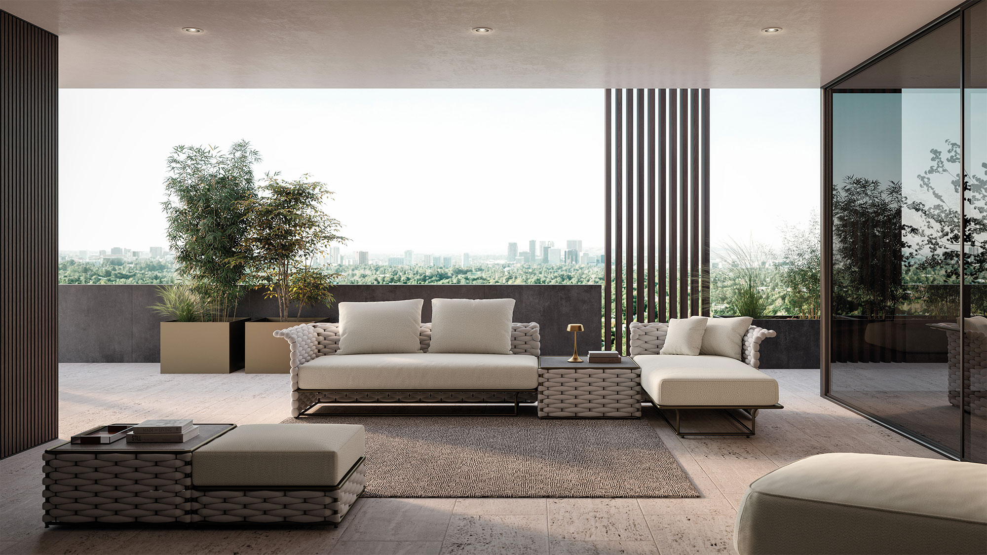 Ogni elemento, dal modulo centrale alla chaise longue, fino agli angoli e alle poltrone, è studiato per essere combinato liberamente, dando vita a composizioni su misura, capaci di adattarsi perfettamente a terrazze panoramiche, verande, giardini o spazi contract.