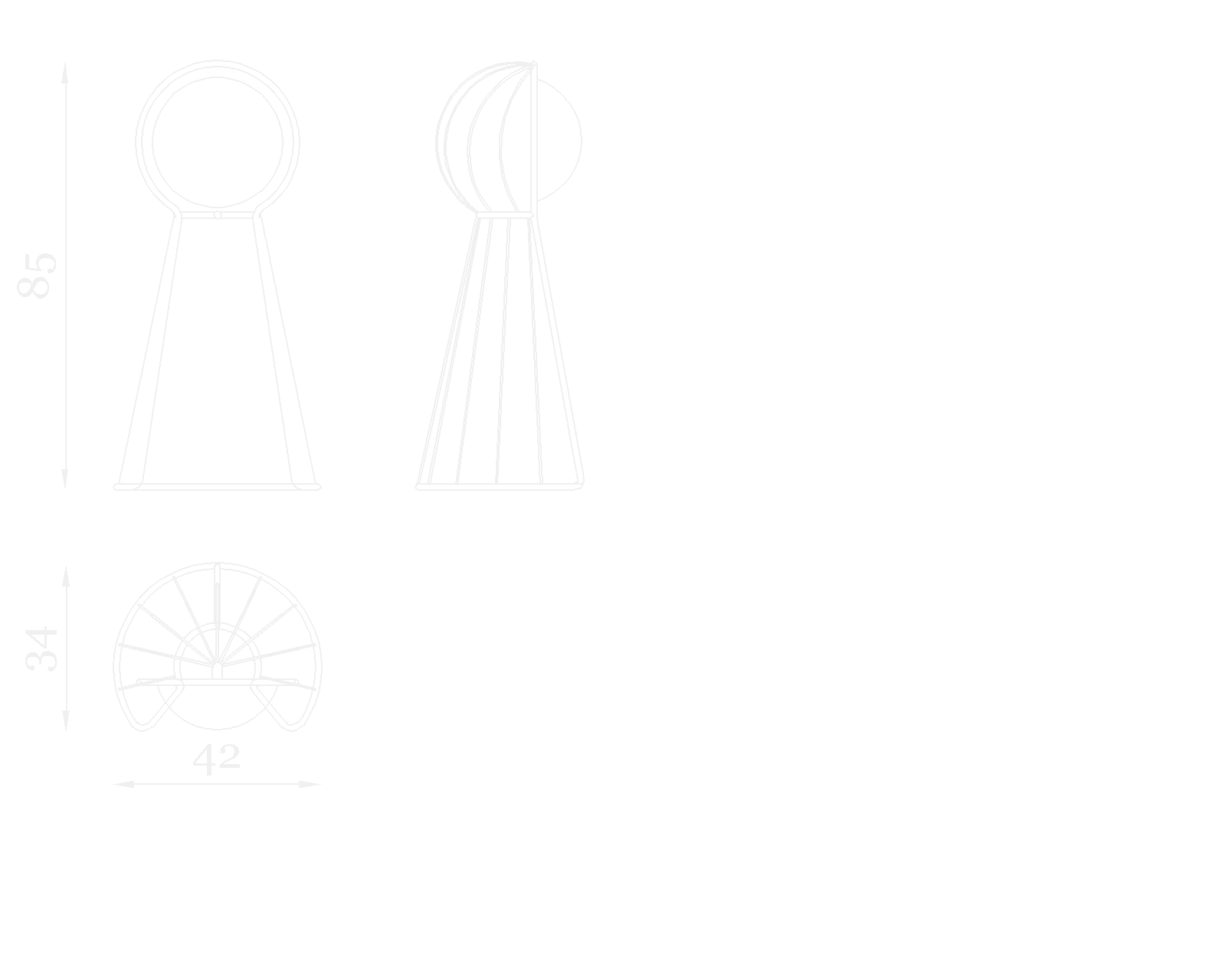 La struttura conica in metallo bronzo outdoor è interamente cordata a mano, creando un volume tridimensionale ricco di ritmo e texture. L’anello superiore accoglie una sfera che diffonde una luce calda, morbida e regolabile in intensità grazie al sistema touch con accensione a sfioro.